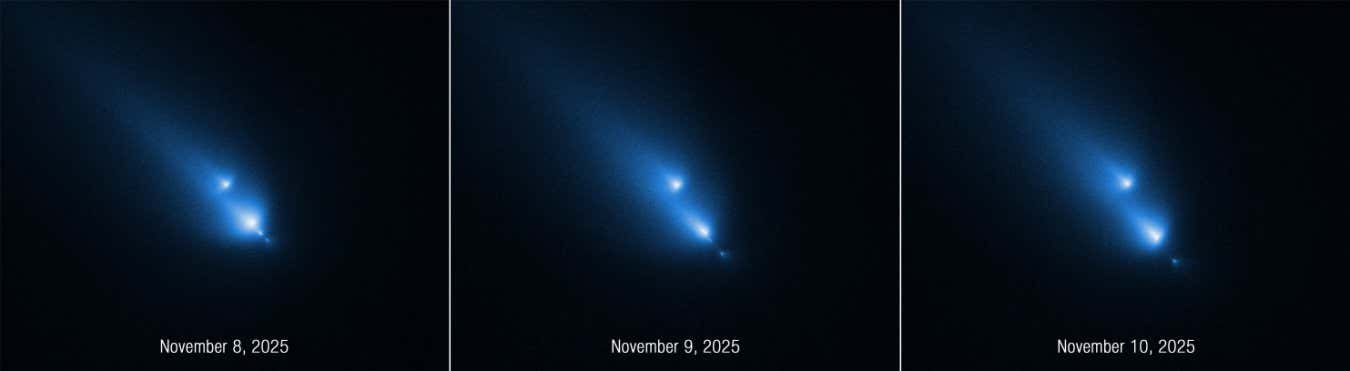 John Noonan at Auburn University in Alabama and his colleagues had planned to observe a different comet with the Hubble Space Telescope, but limitations to the spacecraft’s ability to turn quickly made that impossible, so they found a new target: a comet called C/2025 K1 (ATLAS). When they pointed Hubble at K1, they saw not a single comet but four fragments.