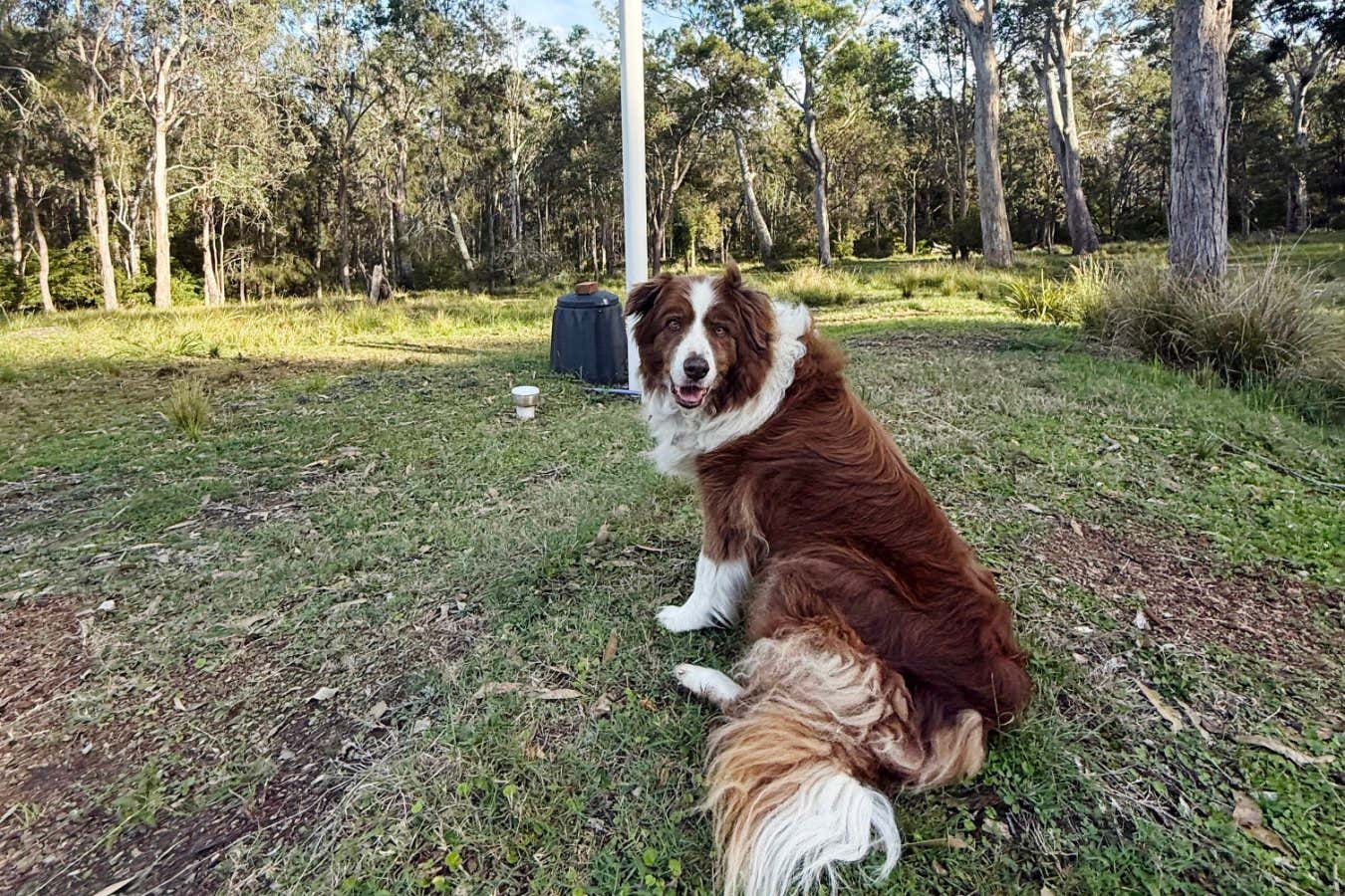 Ringo, the border collie, sitting atop the underground worm farmJames Woodford